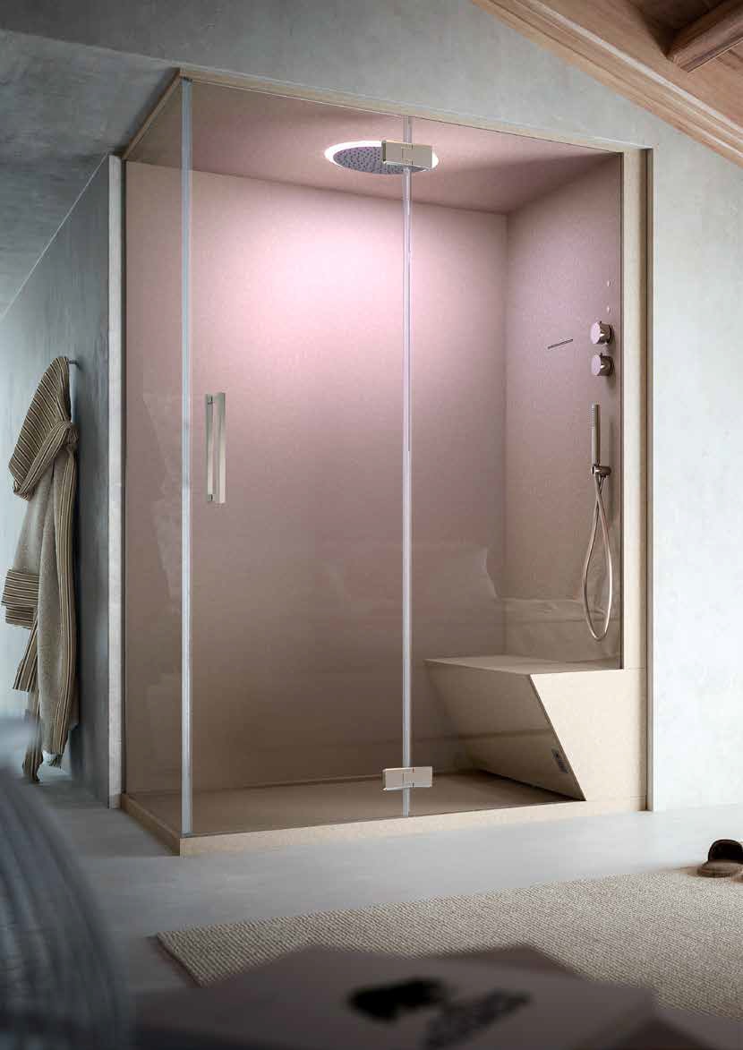 A multifunctional shower is a wellness experience to be enjoyed in the comfort of your bathroom: the combination of hot water, hydromassage jets and steam in a compact space, makes the daily shower experience unforgettable, transforming it into a comfortable and emotional moment. Glass 1989 range of multifunctional showers consist of models different for materials, aesthetics and functions. Some of them have standard sizes, some can be customized, to meet different needs and to optimize the use of available space.